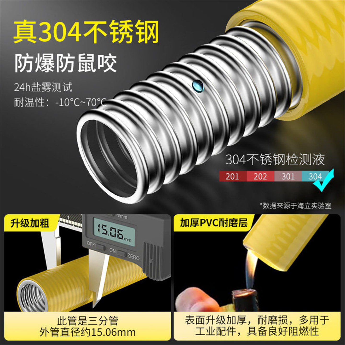 防爆燃气管天然气管304不锈钢波纹管热水器煤气灶具高压金属软管