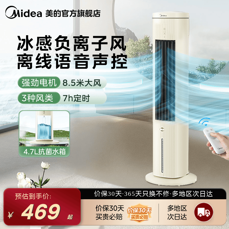 美的新款空调扇家用冷风扇移动空调塔式新款冷气冷风机制冷机官方