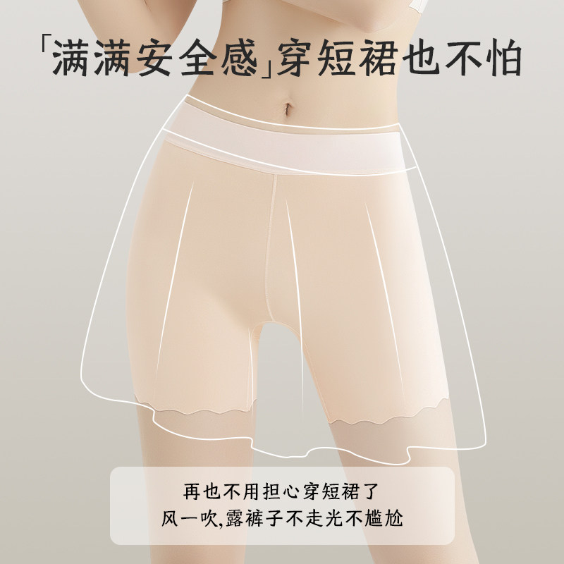 猫人无痕粉底液安全裤女薄款收腹隐形免穿内裤二合一防走光打底裤
