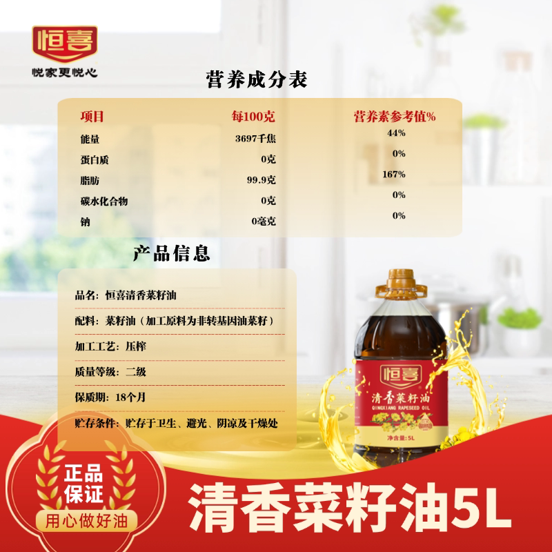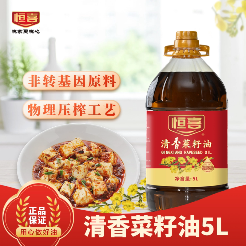 恒喜菜籽油清香食用油5L 非转基因 优质 家庭装用