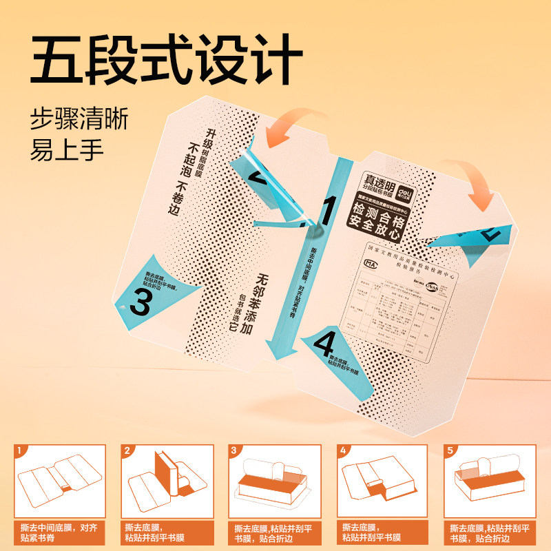 得力分段式包书皮CPP材质安全树脂底膜真透明自粘透明磨砂加厚书套包书膜小学生一年级A4一体化书壳防水课本