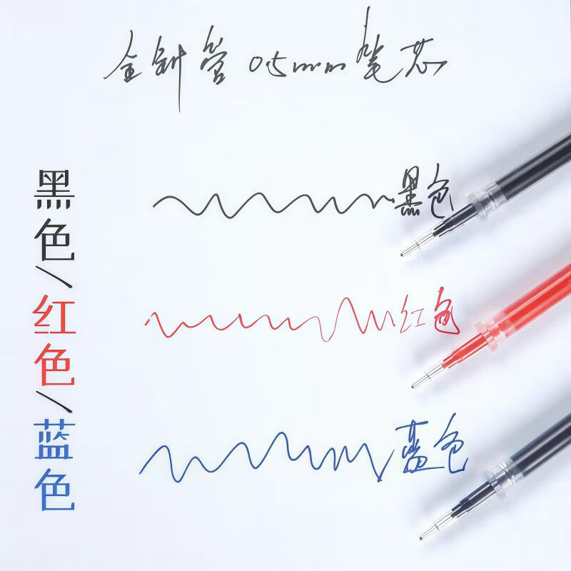 听雨轩200支装笔芯0.5黑色全针管红笔芯中性笔黑笔芯碳素蓝色袋装