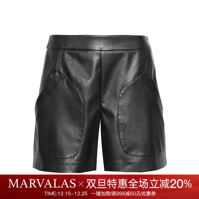 曼德诗高腰纯色皮裤2025春秋新款双色A字版宽松时尚设计感短裤女