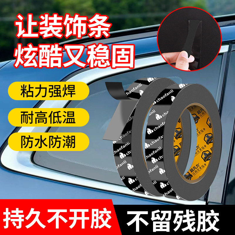 汽车身装饰条固定贴不脱胶强力双面胶车窗镀铬亮条无痕耐高温高粘度尾翼雨眉车身亮条通用不留残胶防水背胶片