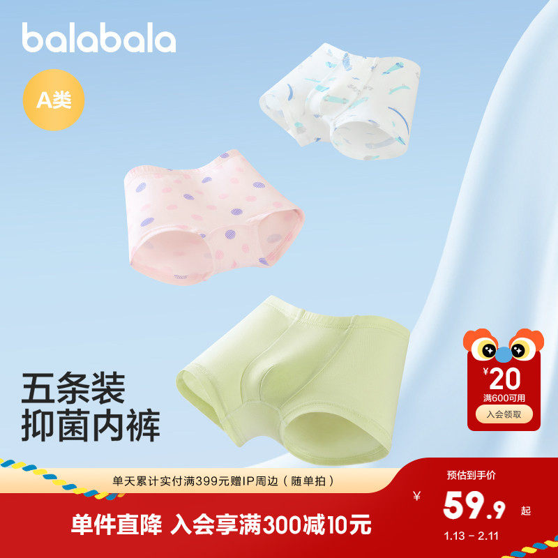 巴拉巴拉男童内裤棉平角儿童四角短裤女童宝宝中大童不夹PP五条装