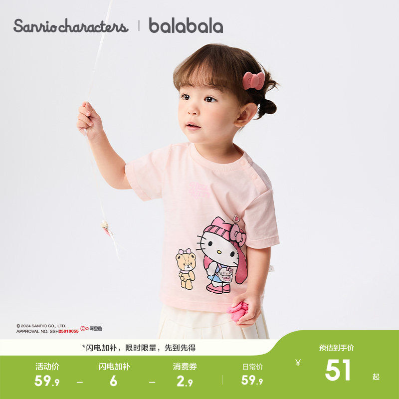 【三丽鸥IP】巴拉巴拉宝宝短袖t恤女童轻薄夏季新款内搭休闲上衣