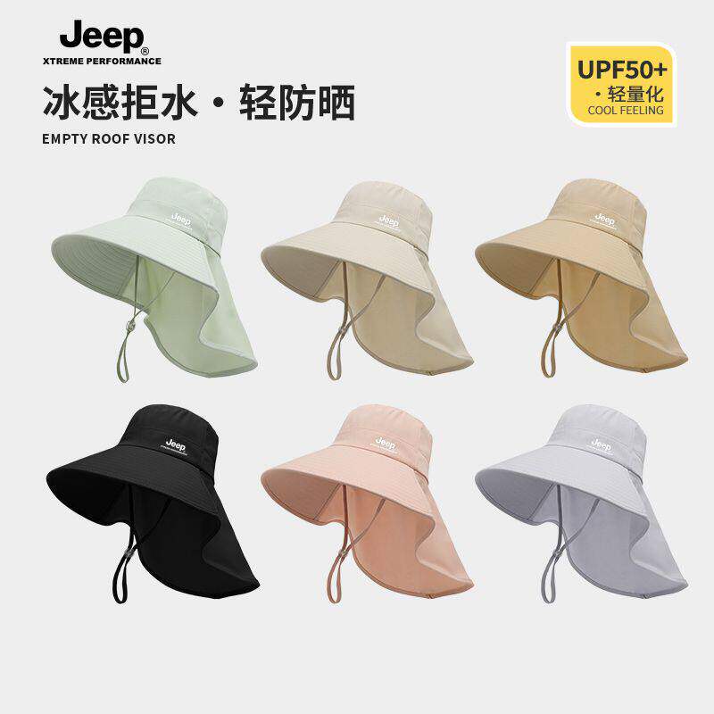 jeep吉普防晒帽女士夏季大帽檐遮阳帽遮脸披肩护颈帽子防紫外线夏