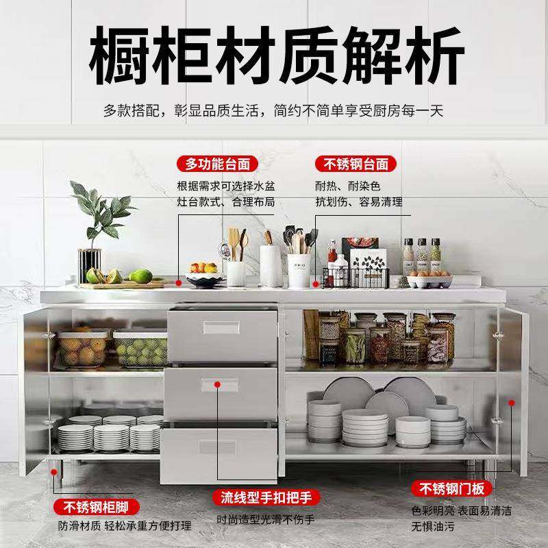 9U304整体不锈钢厨房橱柜简易灶台一体水槽储物家用收纳餐边柜