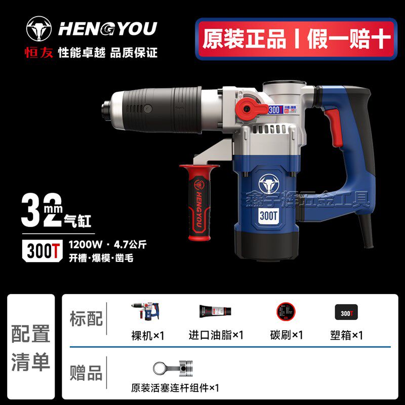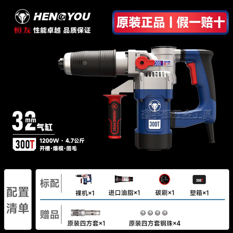 恒友300T电镐方柄大功率加大气缸专业单用轻型专用电镐水电工开槽