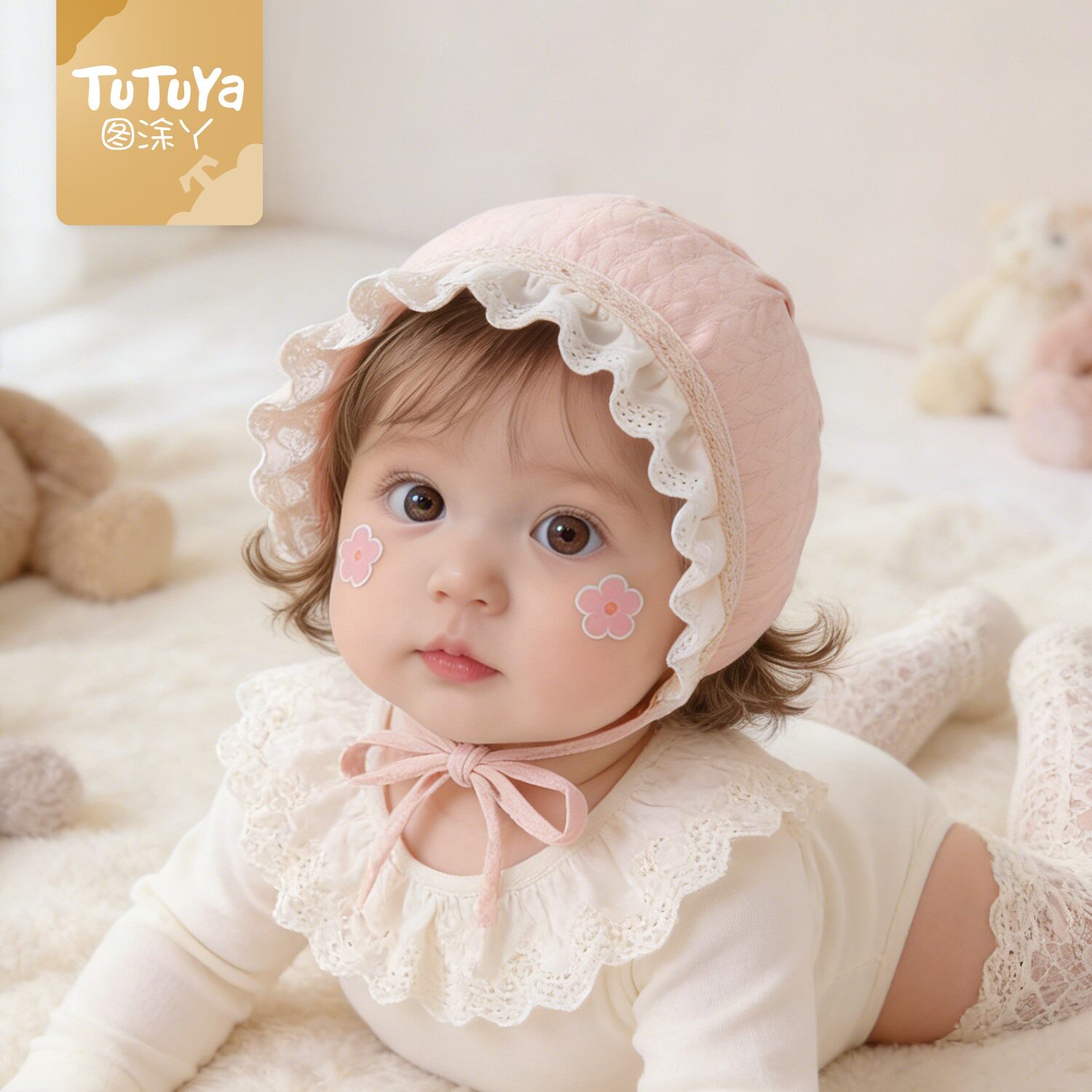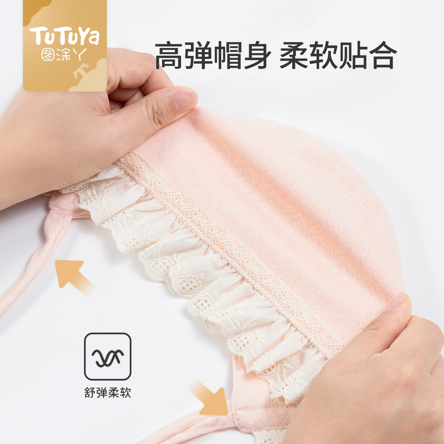 婴儿春季帽子新生胎帽0到6个月女婴幼儿小月龄公主帽宝宝护耳帽春