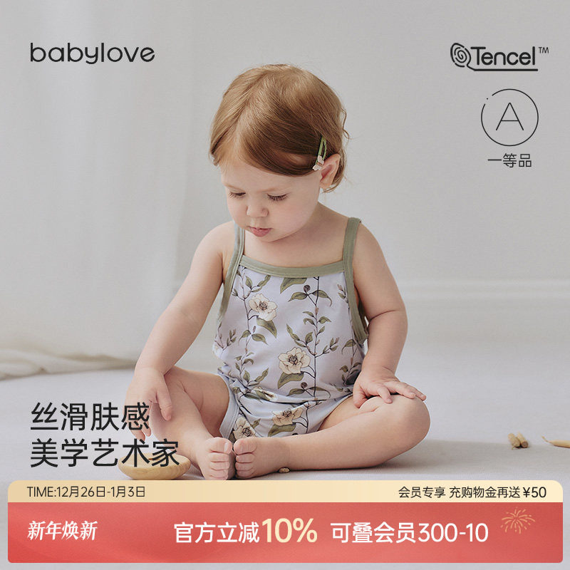 babylove婴儿吊带包屁衣夏季薄款莫代尔三角哈衣女宝宝洋气连体衣
