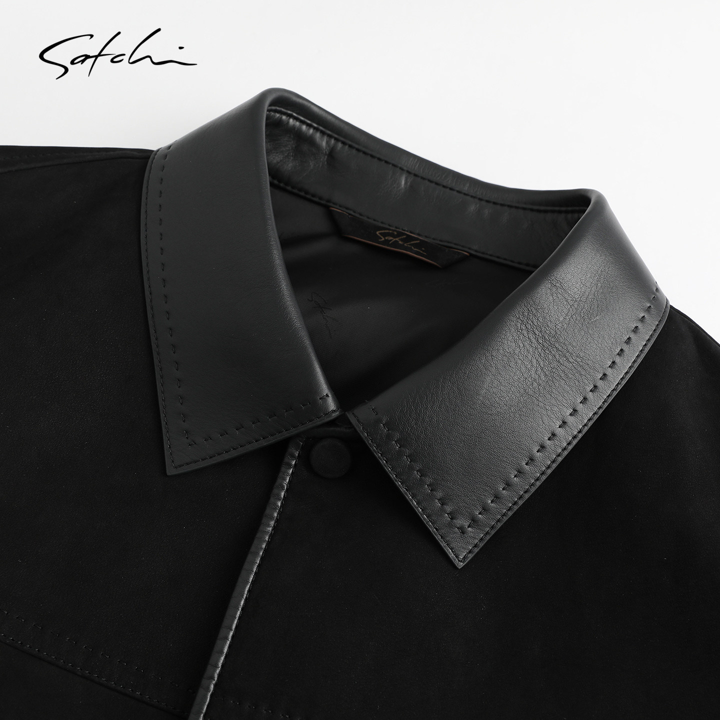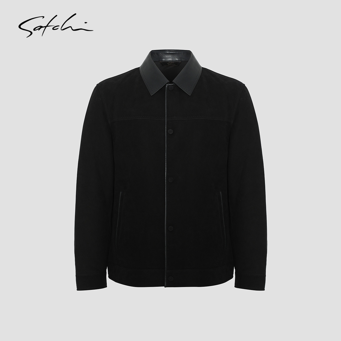 [牛皮革]SATCHI沙驰男装男士真皮皮衣春季新款休闲时尚翻领皮夹克