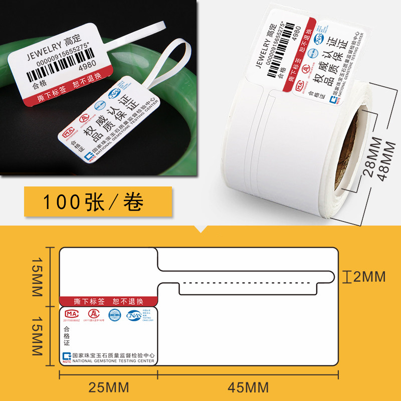 热敏珠宝标签纸首饰翡翠玉器眼镜吊牌热敏合成纸手持蓝牙打印机