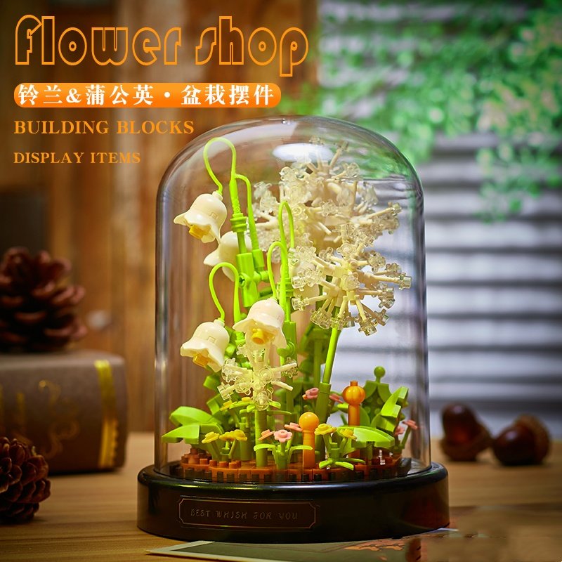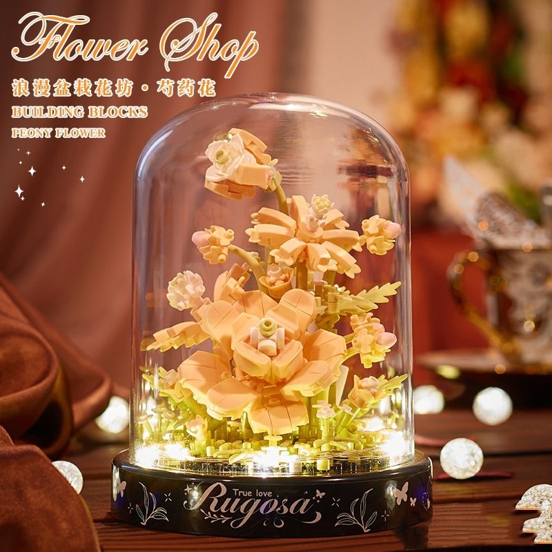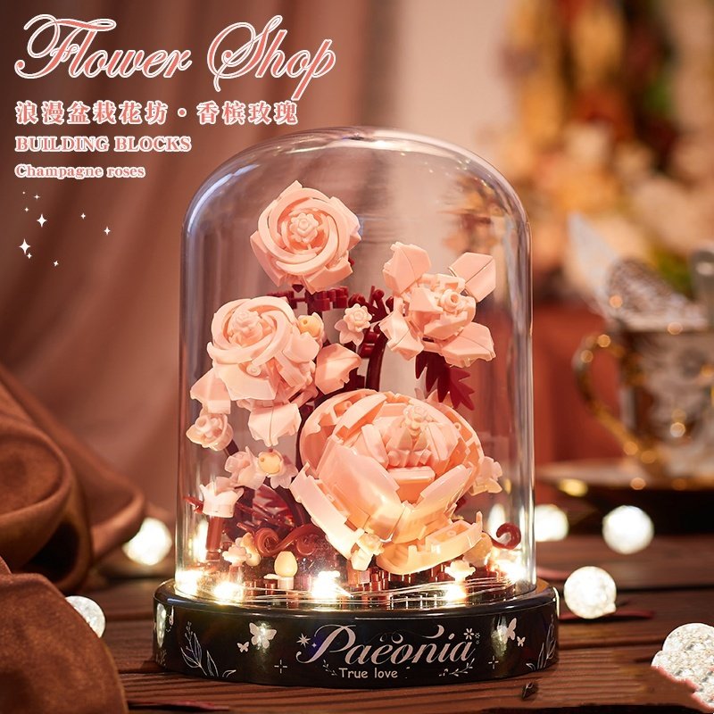 2025新款积木花植物盆栽系列女孩永生玫瑰花摆件模型女生玩具礼物