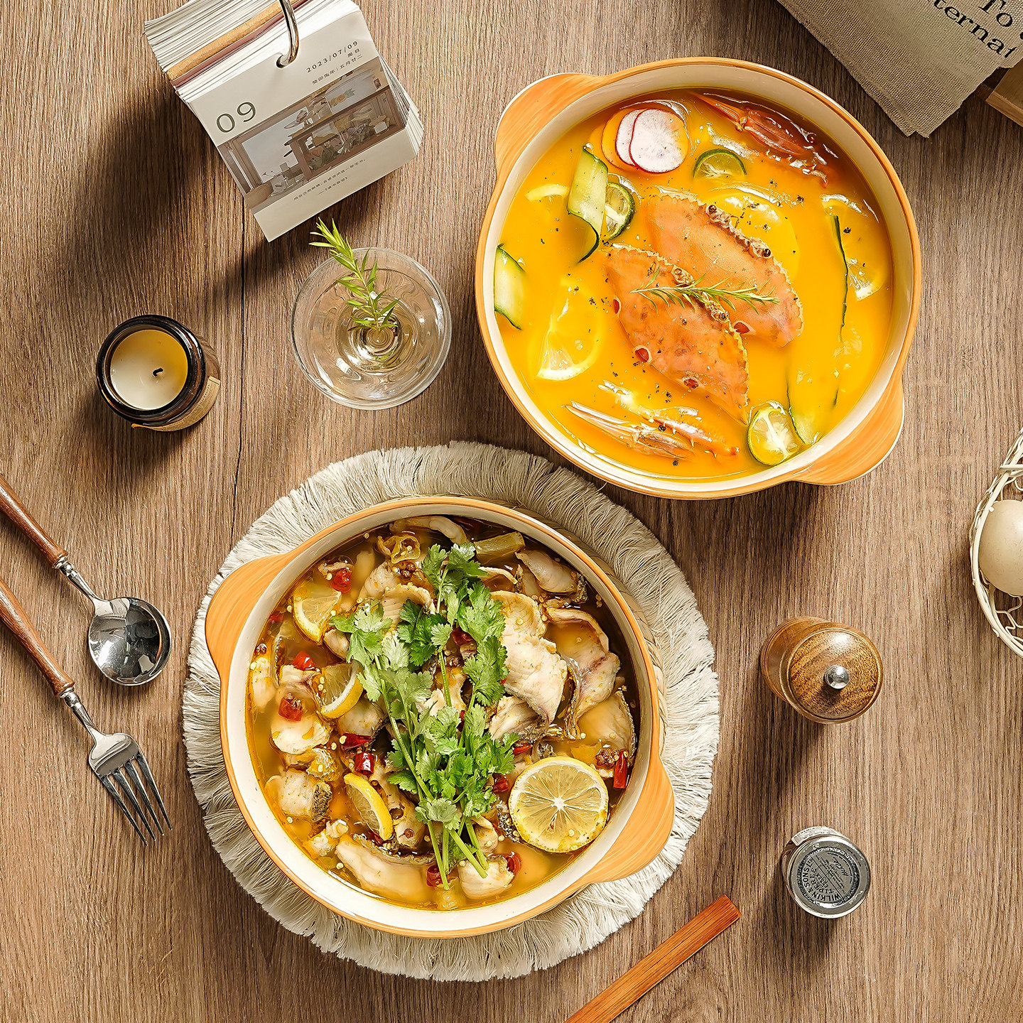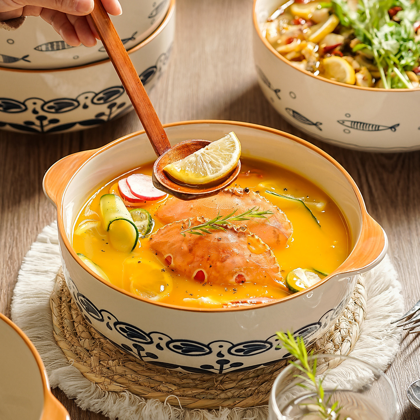日式双耳酸菜鱼家用2025新款陶瓷餐具高颜值加厚防烫大汤碗大盆碗