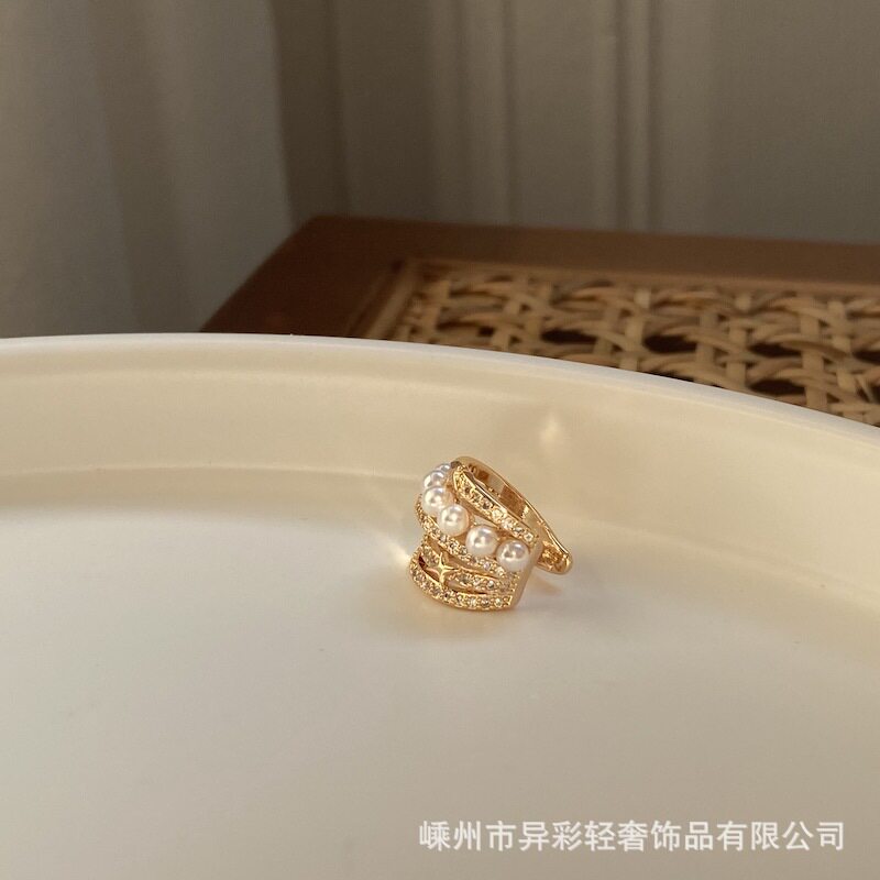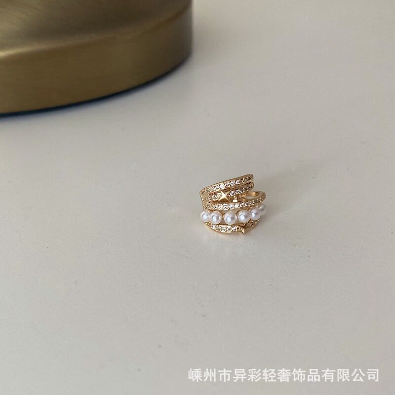 异彩法式设计高品质珍珠锆石无耳洞星人耳夹耳骨夹复古耳环耳饰女