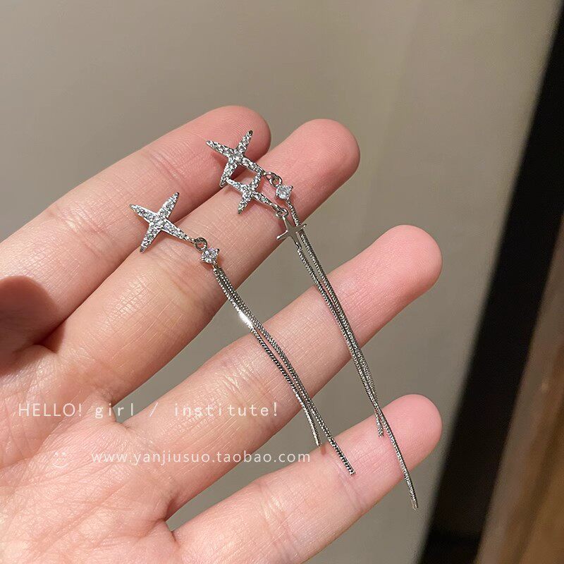 星星锆石流苏耳坠女2024新款爆款耳环轻奢高级感气质长款耳饰