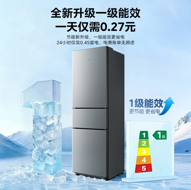 政府补贴海尔出品统帅三开门251L一级风冷无霜租房小型家用电冰箱