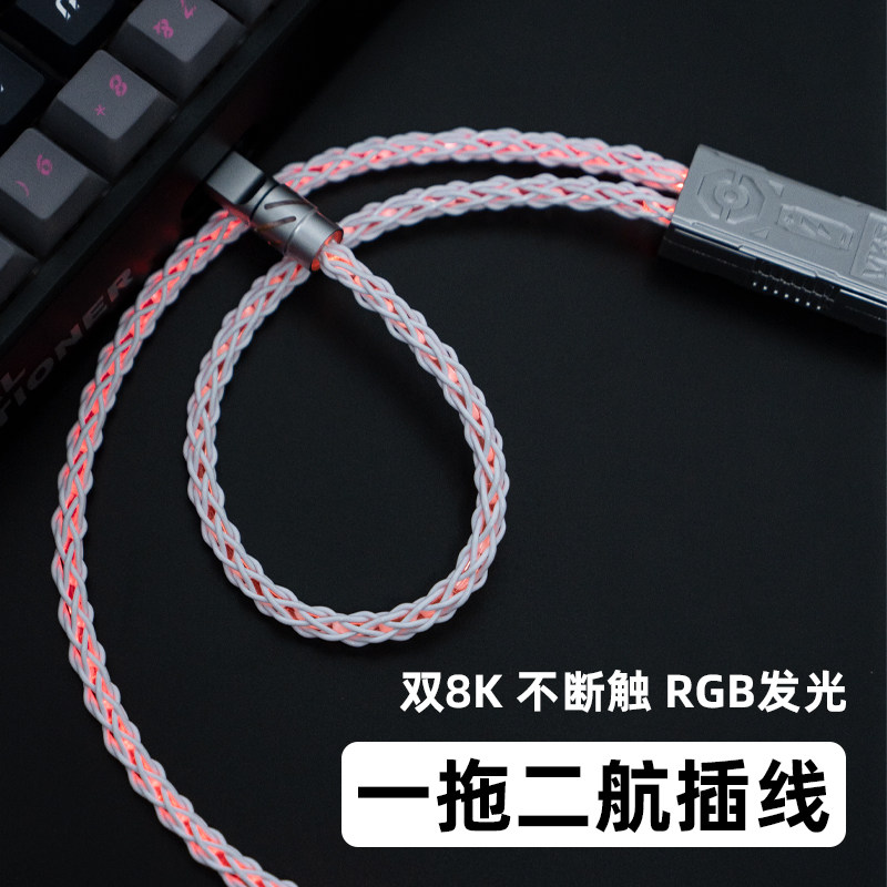 VKP客制化机械键盘航插线一拖二螺旋type-c编织金属接口8K磁轴线