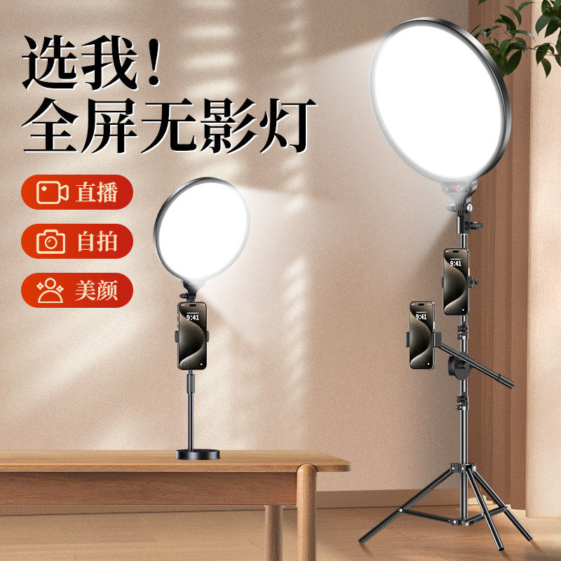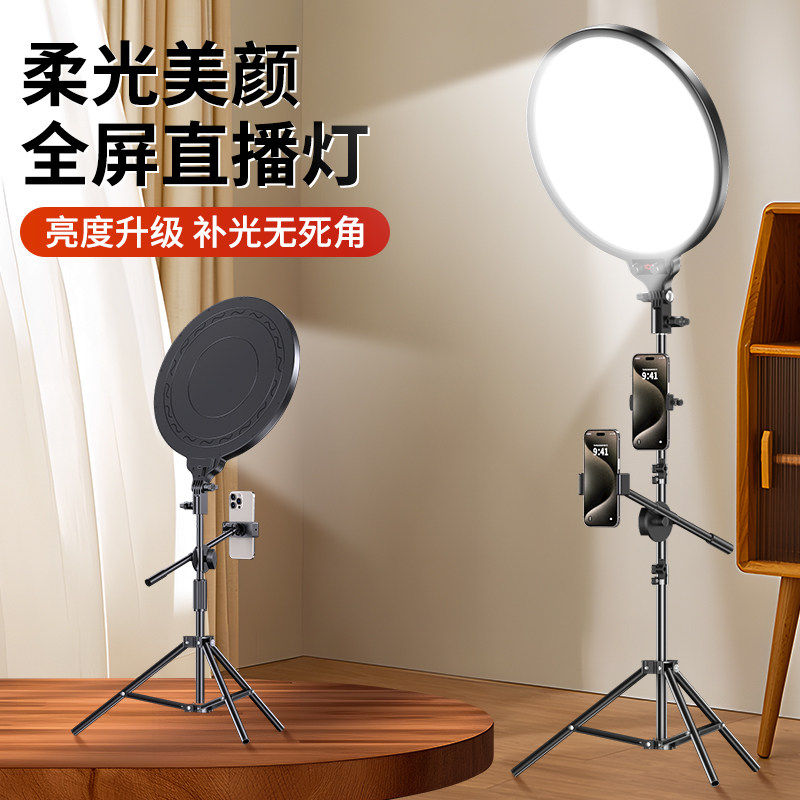 【新升级全屏柔光直播补光灯灯】主播专用面部专业打光灯直播间灯光手机桌面美颜灯室内拍照摄影拍摄环形支架