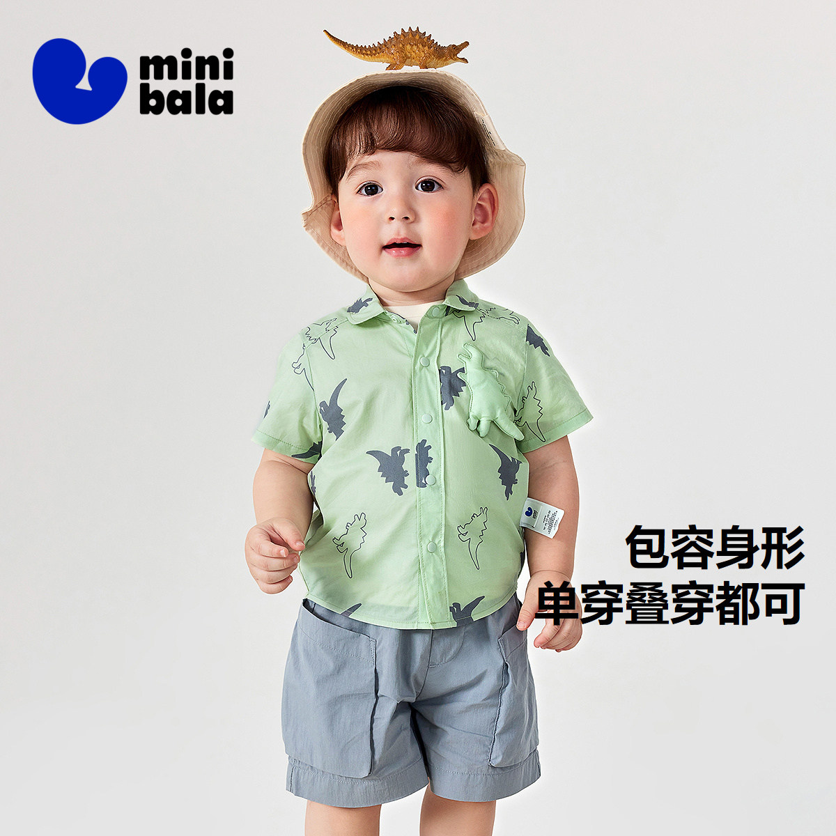 【纯棉】迷你巴拉巴拉男童亲肤透气不闷汗萌趣恐龙短袖衬衫夏新款