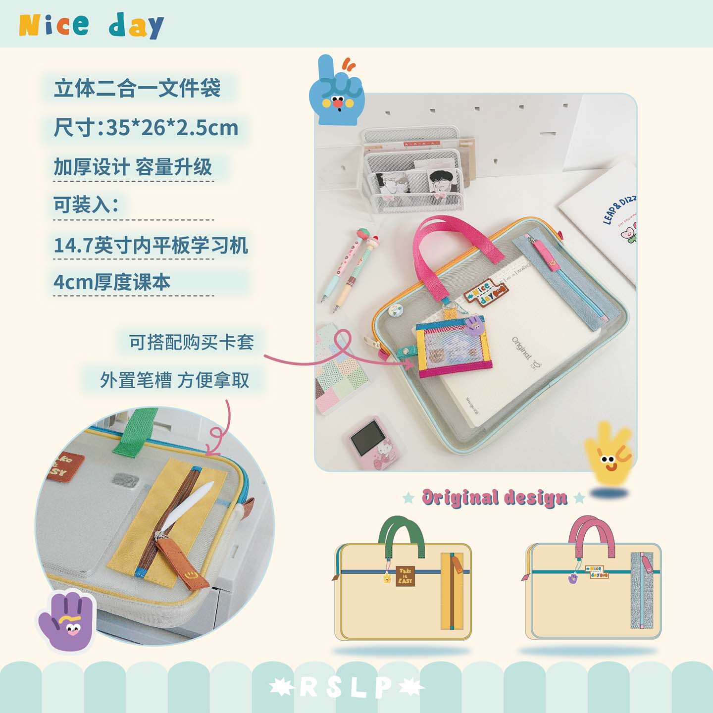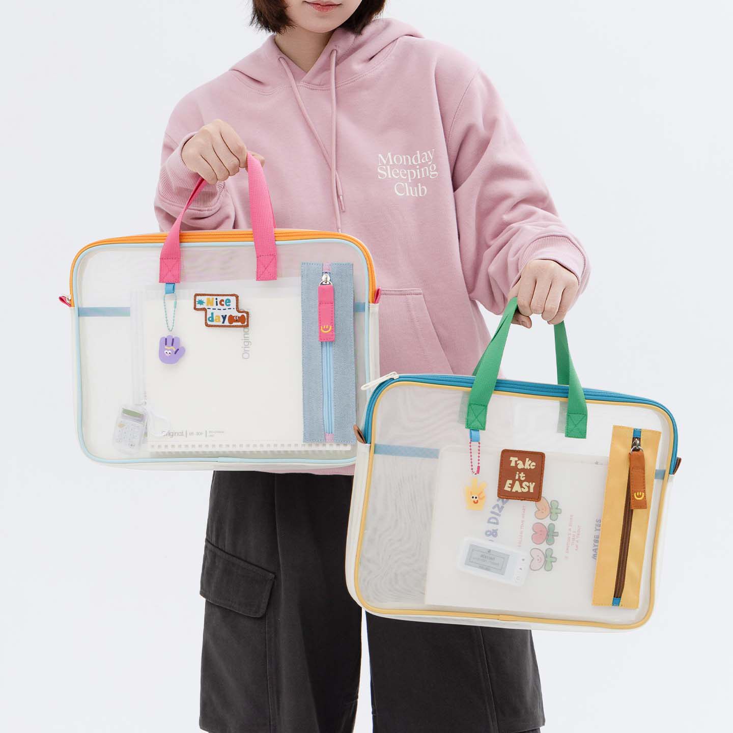 若素良品透明学生手提多功能大容量平板文件收纳袋笔袋二合一体式