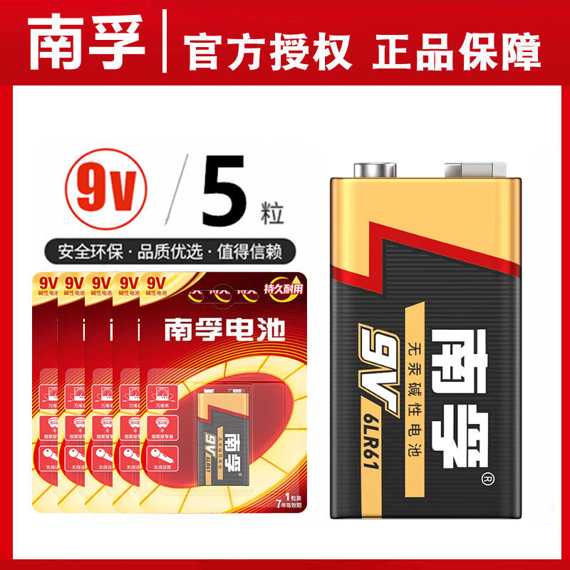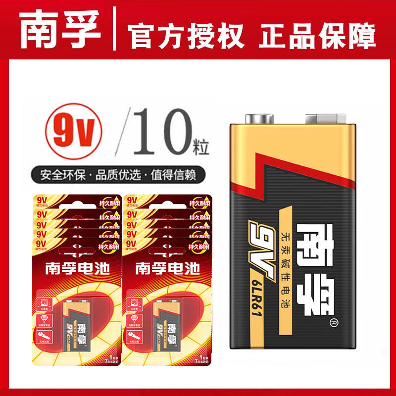 南孚电池9V方块叠成电池6LR61碱性6f22话筒万用表玩具遥控器9九伏通用1604A/1604G耐用正品2粒-20粒可选