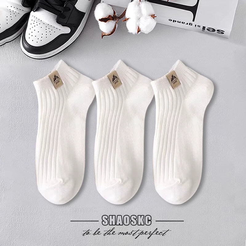 袜子短袜男款纯色棉男士透气防臭吸汗浅口船袜学生黑白色百搭运动