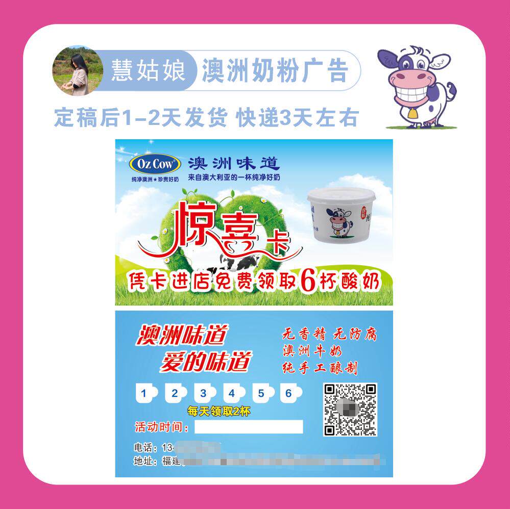 【澳洲奶粉常用酸奶卡】惊喜福利美食代金券牛奶粉名片