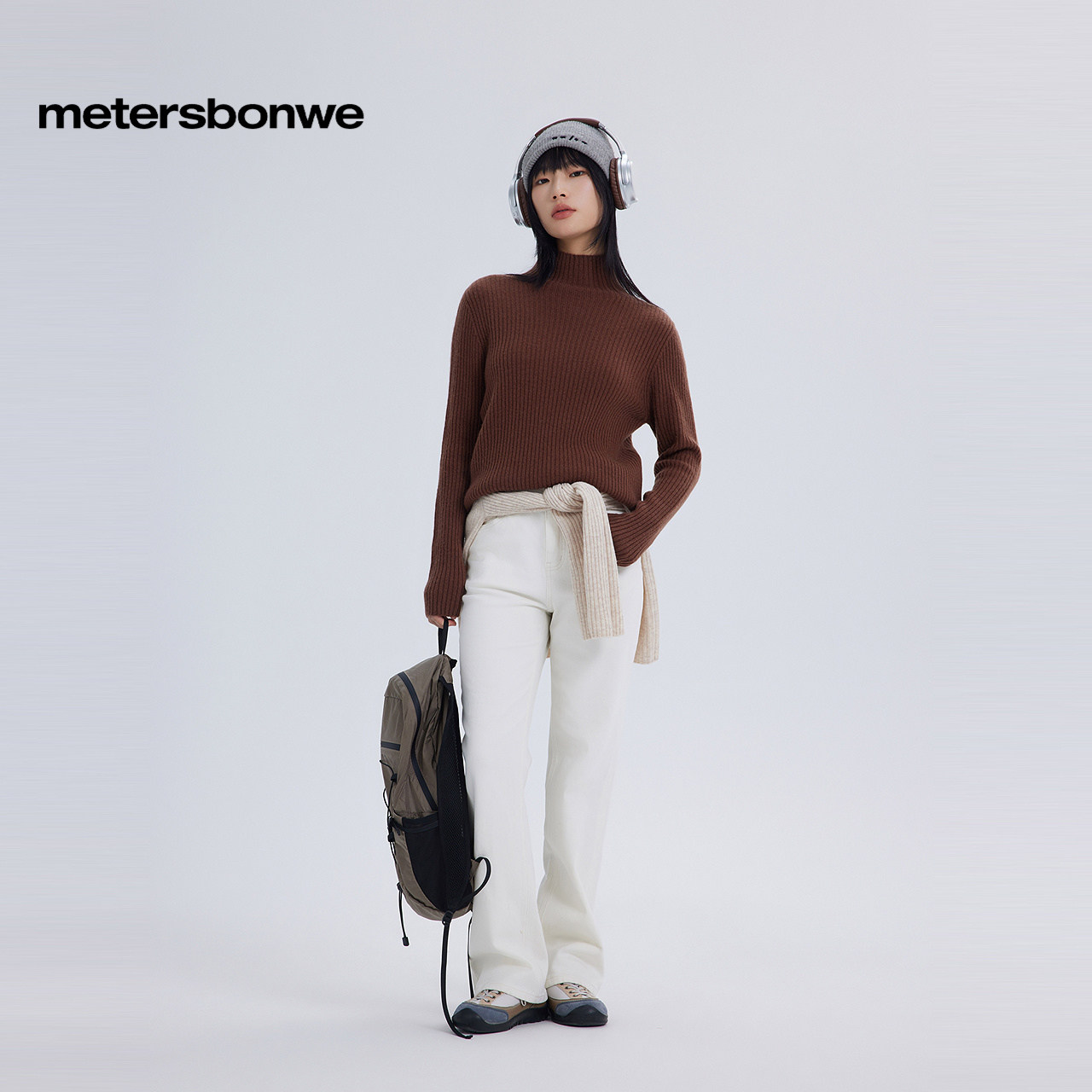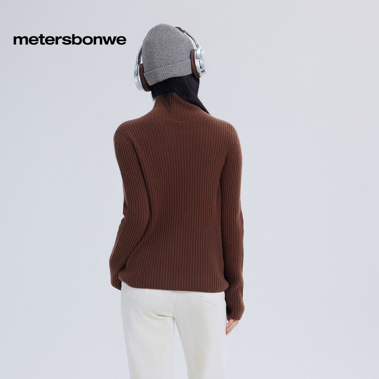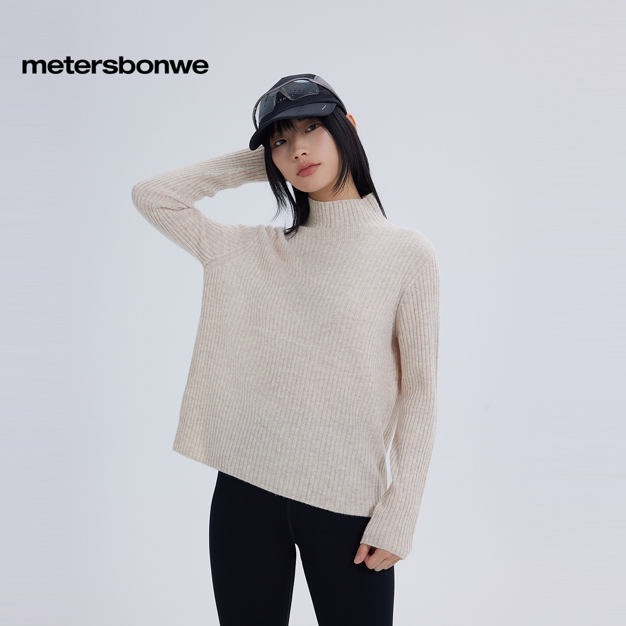 美特斯邦威全羊毛半高领毛衫秋季新款纯色绵羊毛毛衣内搭女