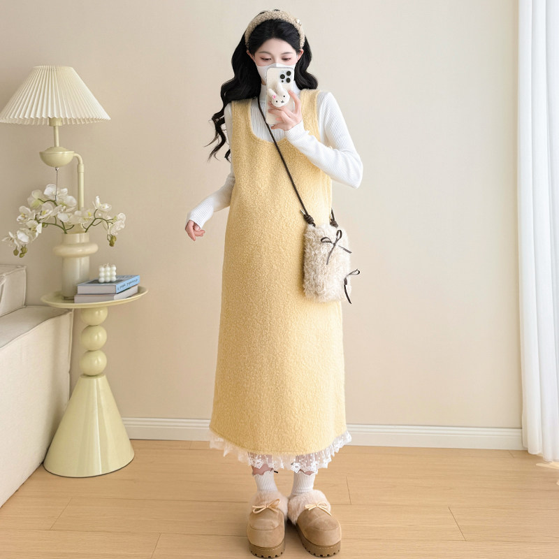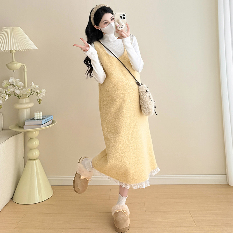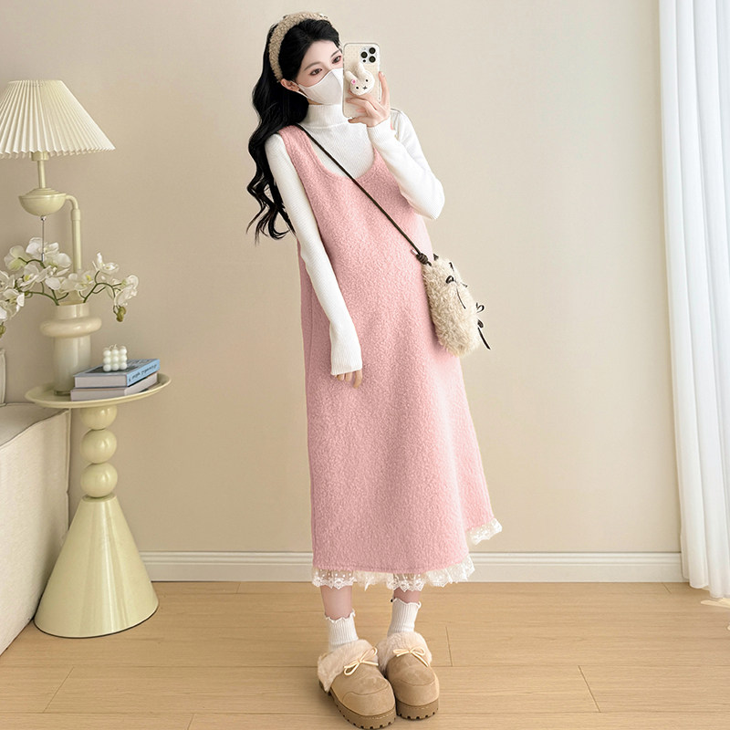 婧麒孕妇装高级新年毛衣孕妇裙子冬装孕期漂亮孕妇连衣裙法式长裙