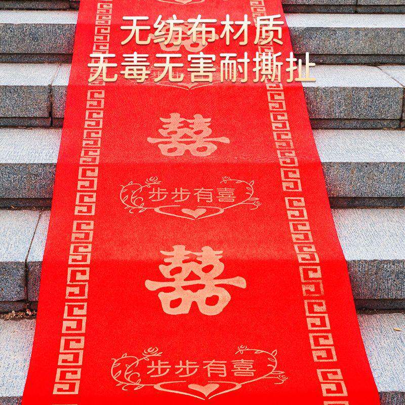 结婚红地毯一次性楼梯门口加厚无纺布喜字婚庆用品红色大地毯