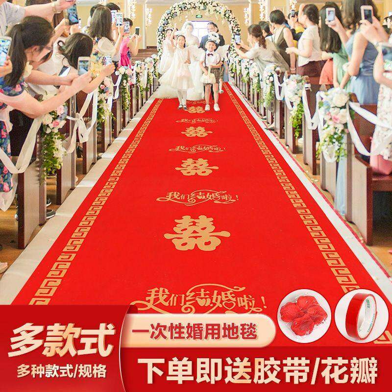 红地毯一次性结婚用防滑婚庆用品门口楼梯场景喜字喜事加厚毯子包