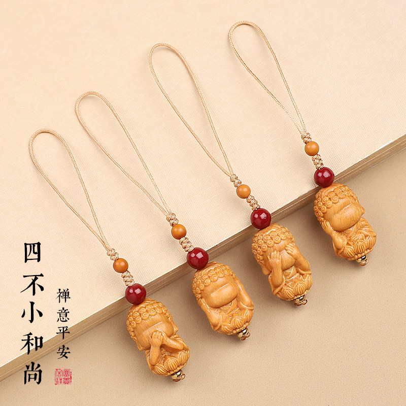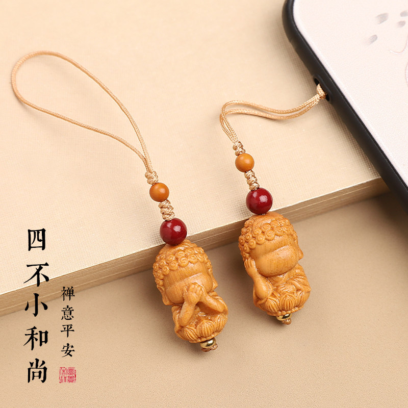 芭比檀木可爱四不小佛手机链挂件汽车钥匙u盘挂绳汽车钥匙环挂饰