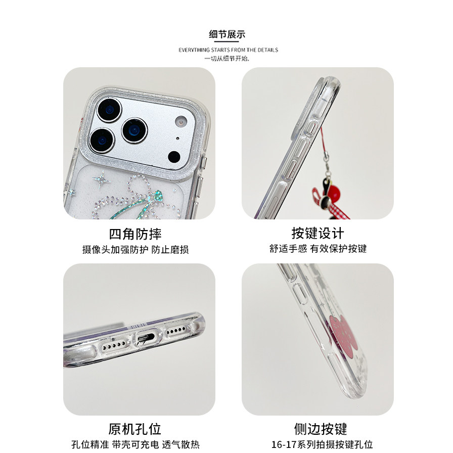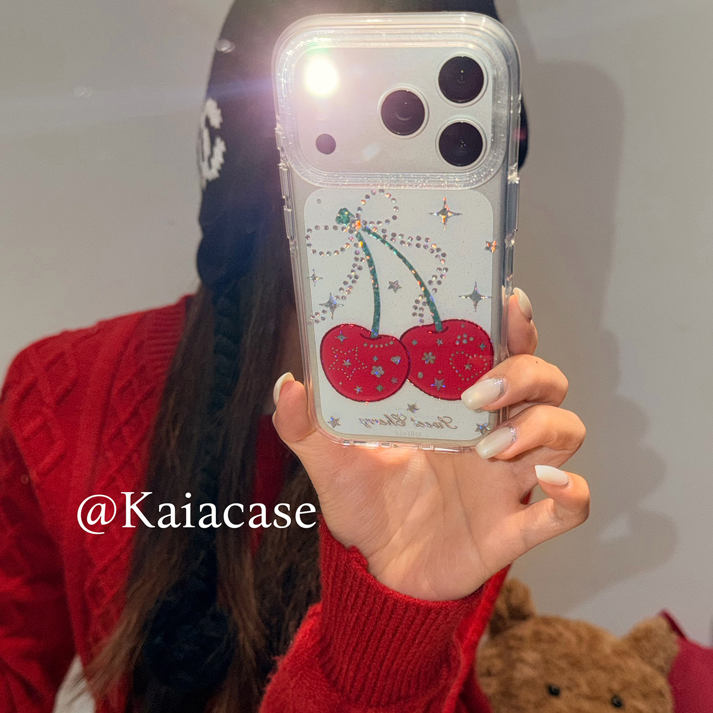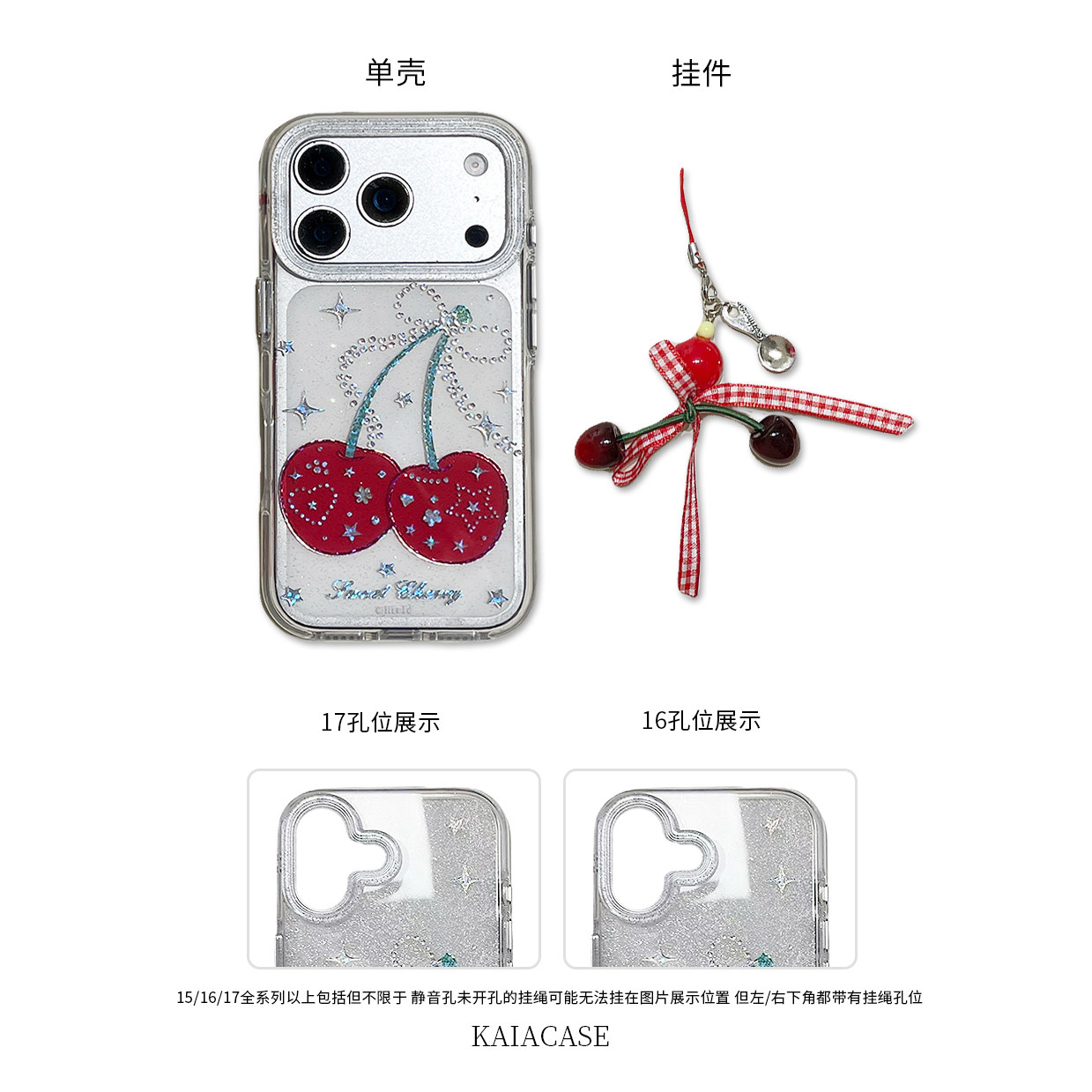kaia超仙唯美ins透明水钻红樱桃适用苹果17promax手机壳iphone16pro新款13女14pro带挂件15pro全包防摔手机套