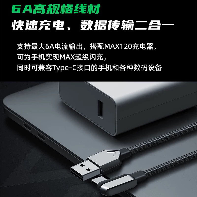 适用黑鲨6A风行数据线120神仙秒充黑鲨5手机5Pro充电线黑鲨4Pro快充4s充电器线黑鲨3/3s闪充65w线安伏乐原装