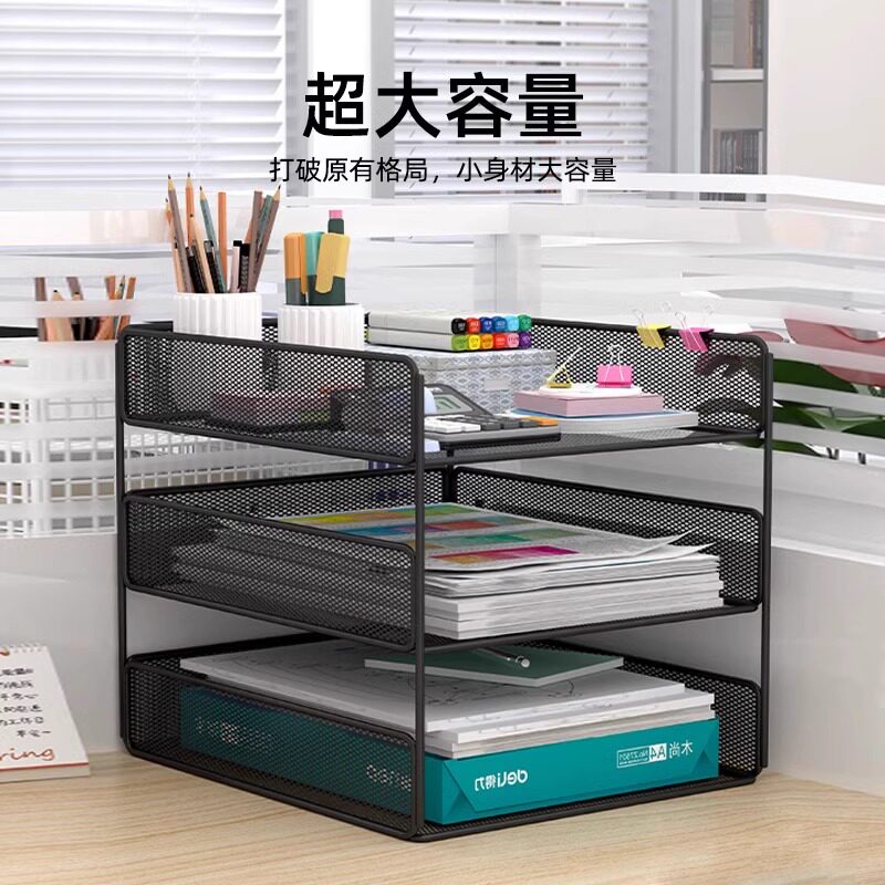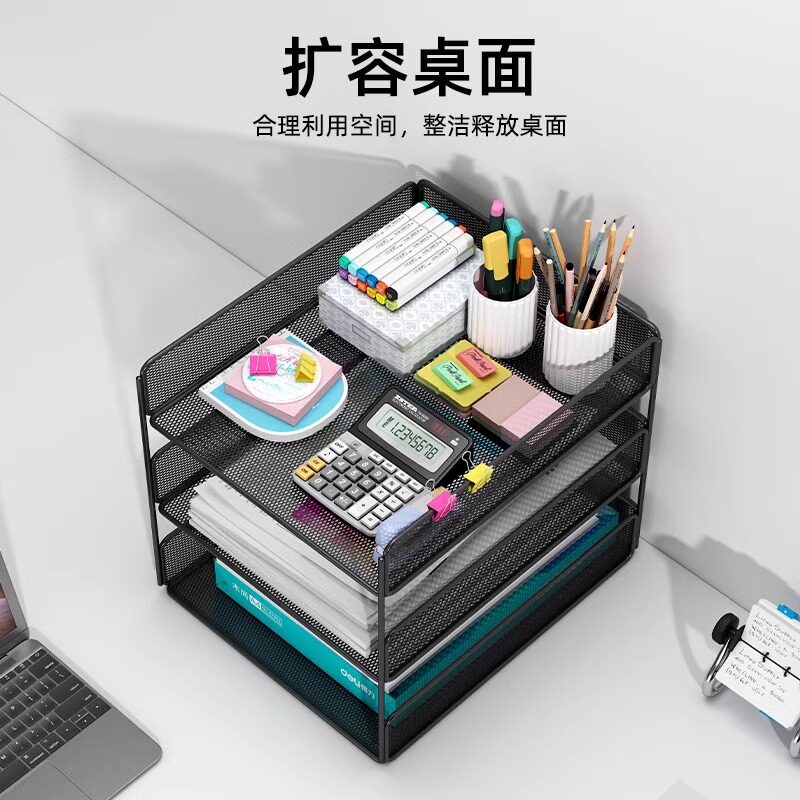 金属可抽拉文件盘文件架桌面多层办公室a4金属网纹收纳架分层文件筐立体整理资料文件档案书架加厚铁艺收纳盒