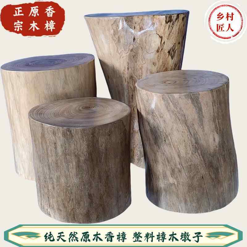 香樟木桩子新中式家具带皮原木墩子实木茶几换鞋凳花盆底座亚马逊