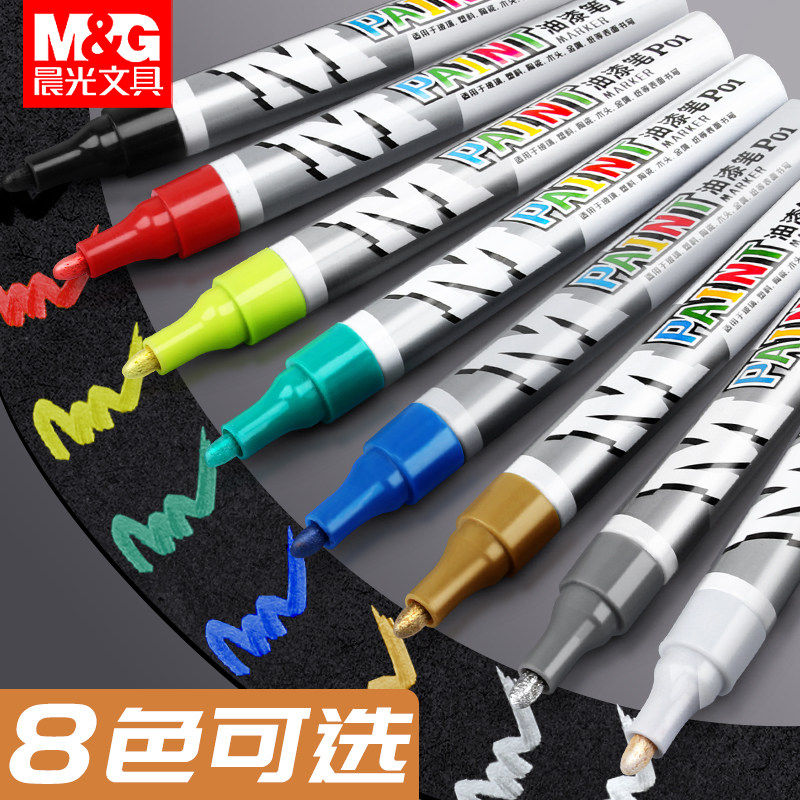 晨光油漆笔白色金属工业不掉色防水不掉色红色记号笔汽车用高光补漆笔轮胎家具涂鸦签名笔金色马克笔石碑墓碑