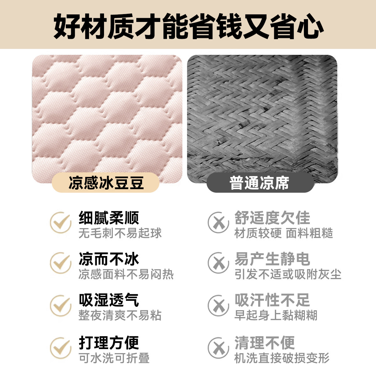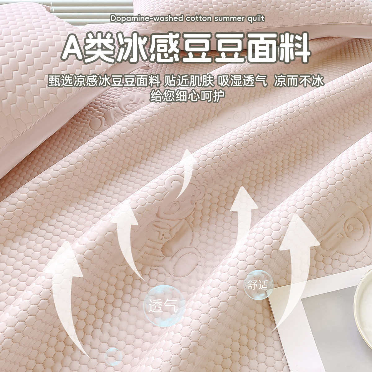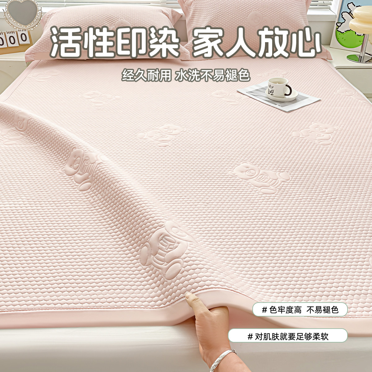 凉席冰豆豆凉感软席夏季宝宝家用空调席亲肤三件套学生宿舍可折叠