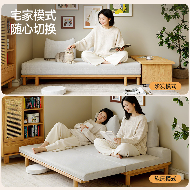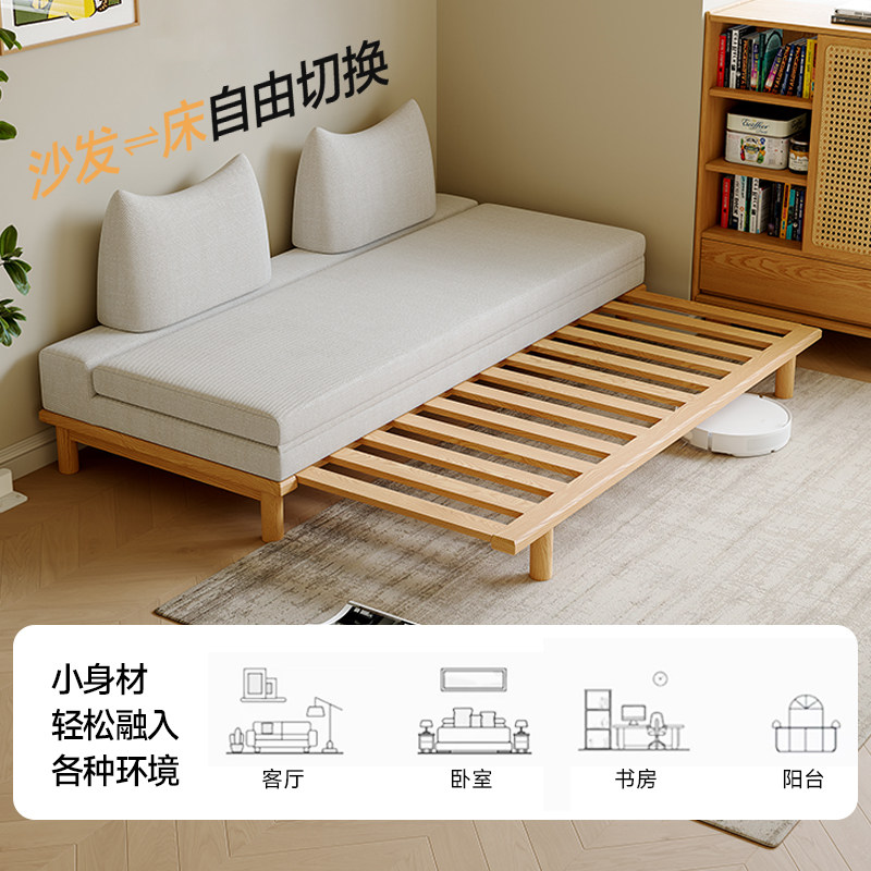 司朴可拆洗实木布艺沙发小户型客厅书房两用伸缩抽拉折叠沙发床
