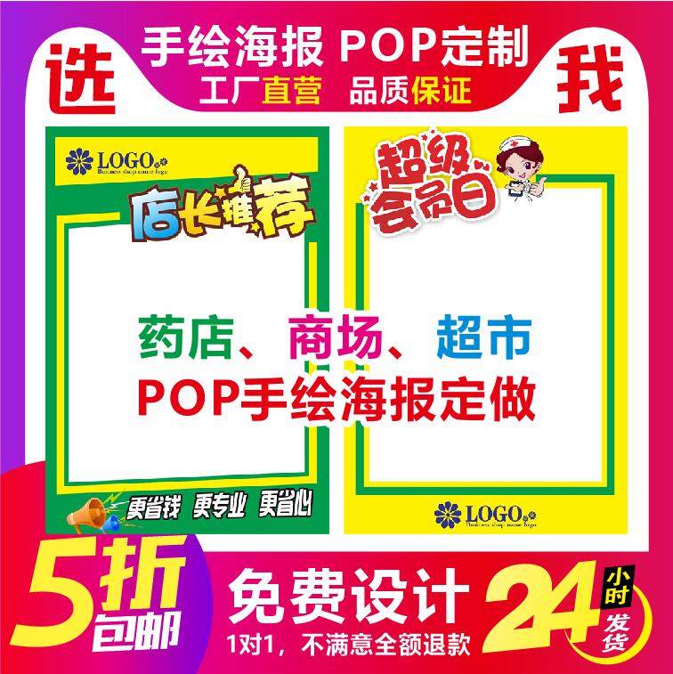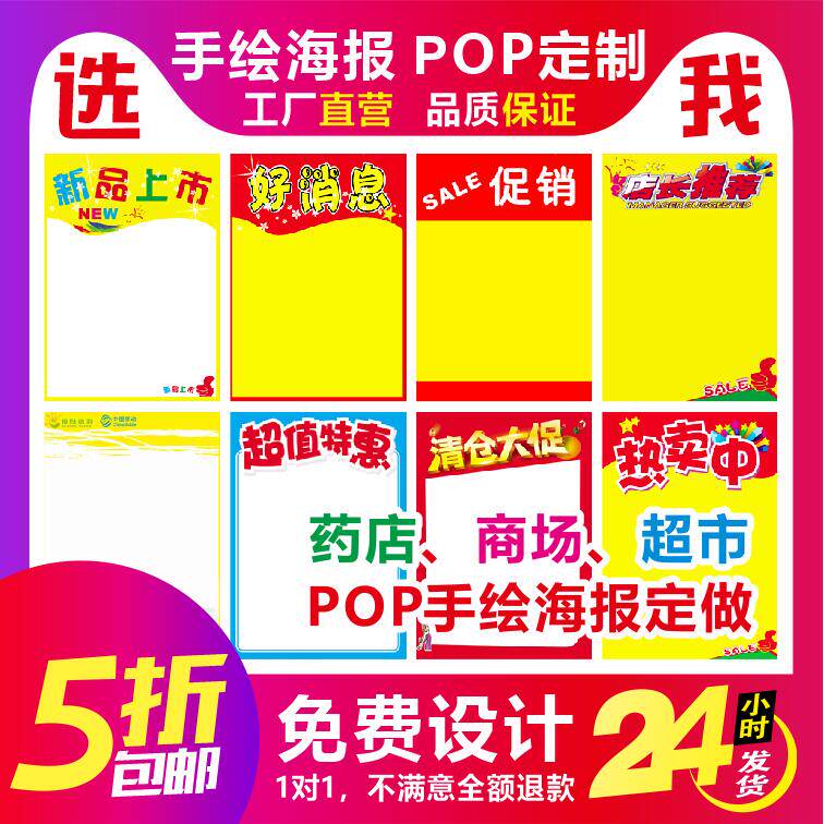促销手绘POP海报印刷手写空白海报定做商场超市POP海报定做