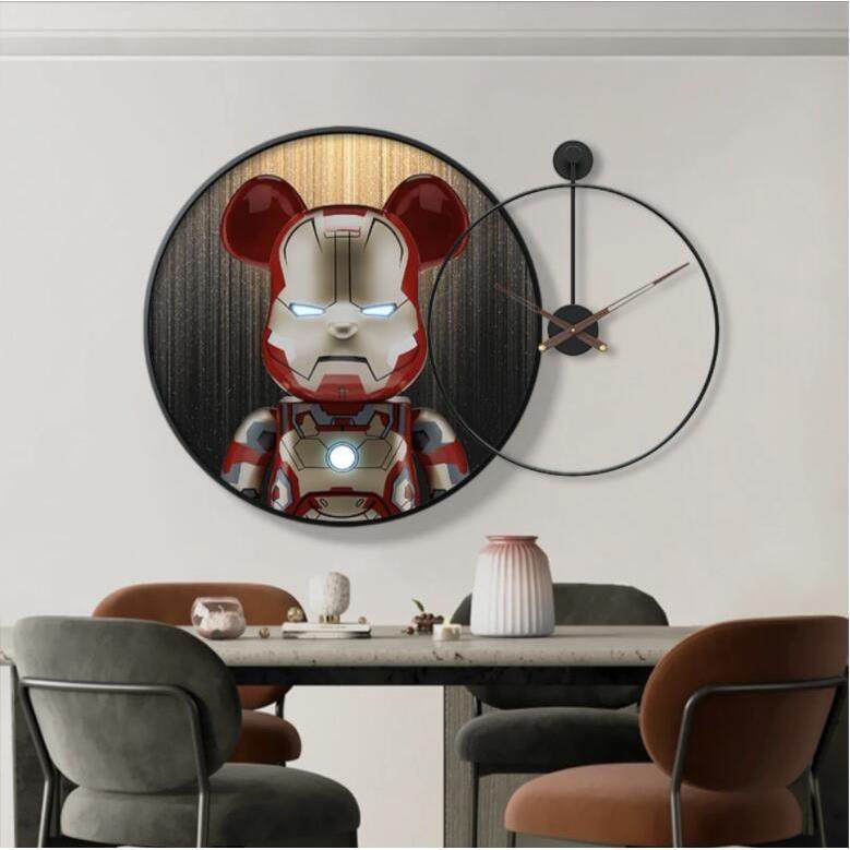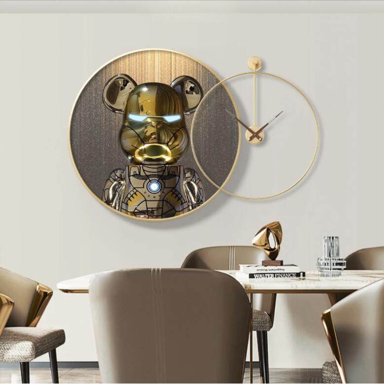 2023新款轻奢餐厅装饰画时钟钟表饭厅歺餐厅挂画现代简约餐桌墙壁