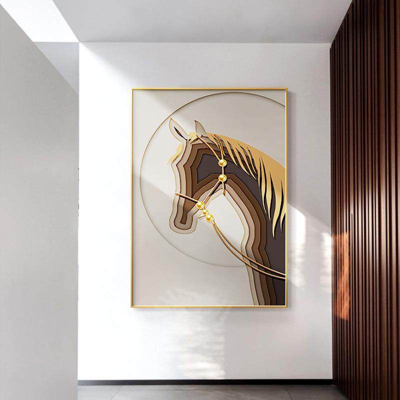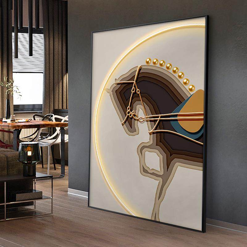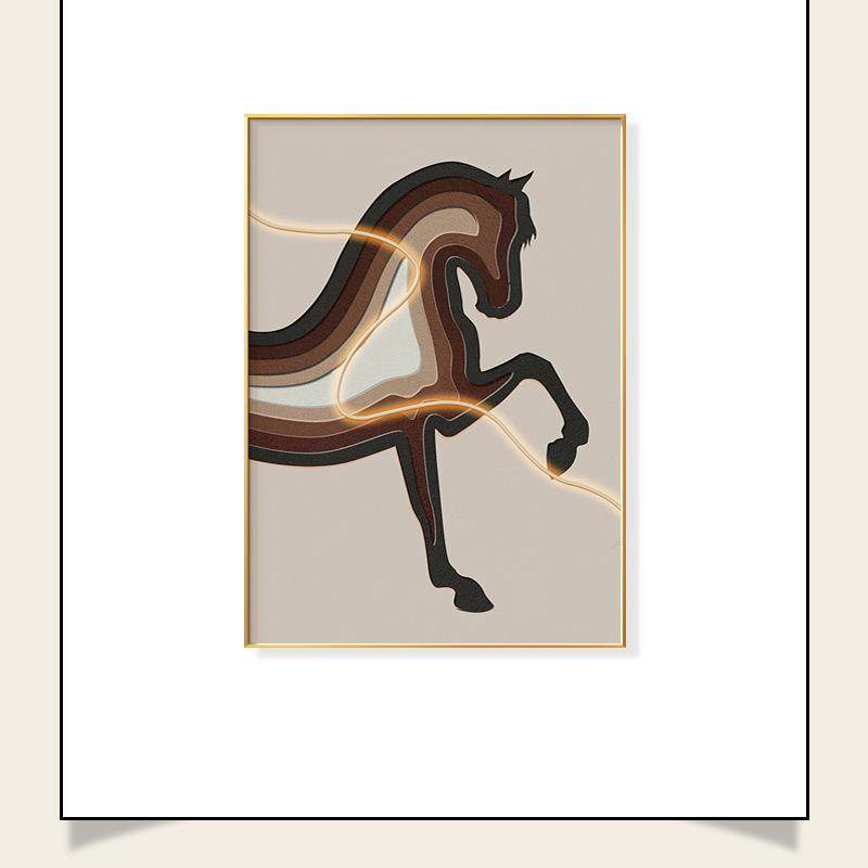现代轻奢玄关客厅装饰画带led灯画竖版马到成功客厅走廊过道挂画