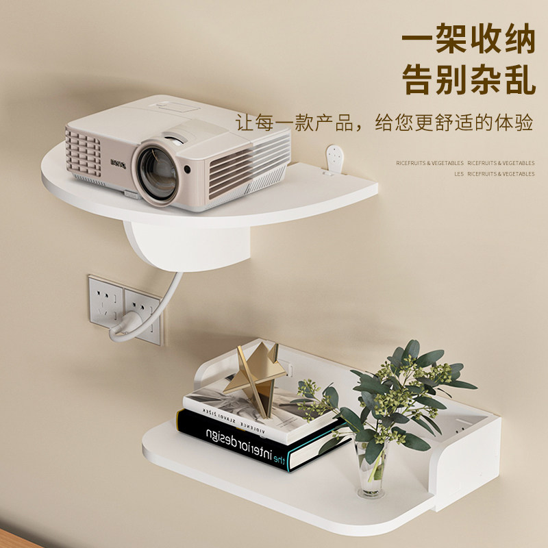 免打孔墙面置物架纯实木投影仪支架床头墙挂置板简约升收纳无痕钉
