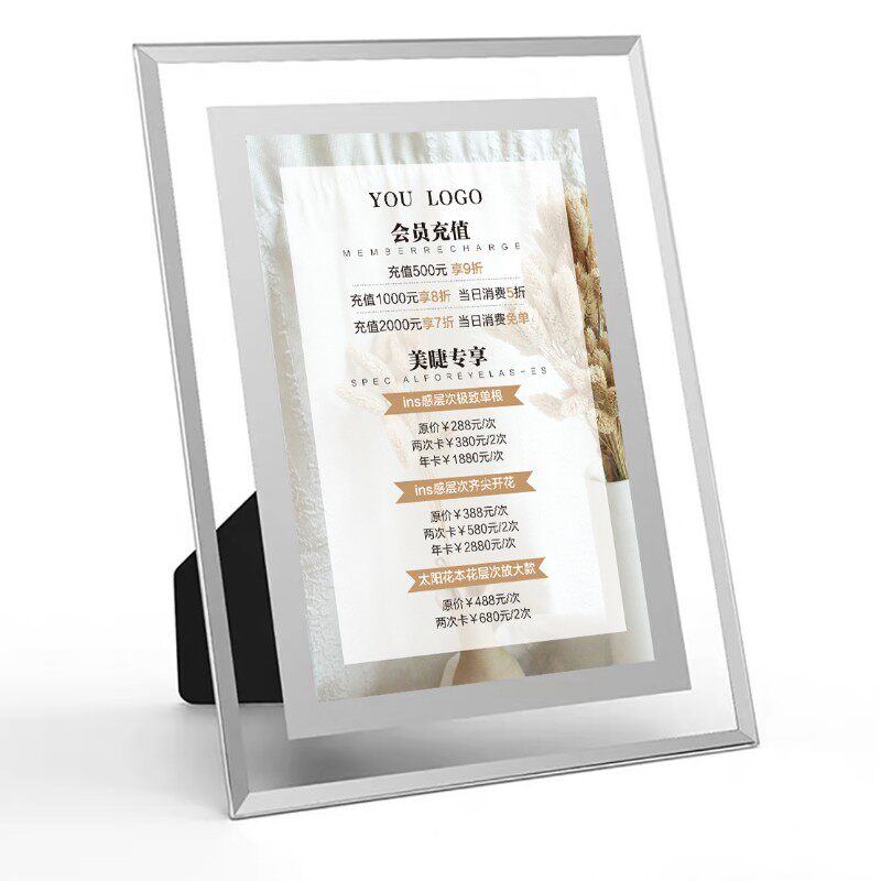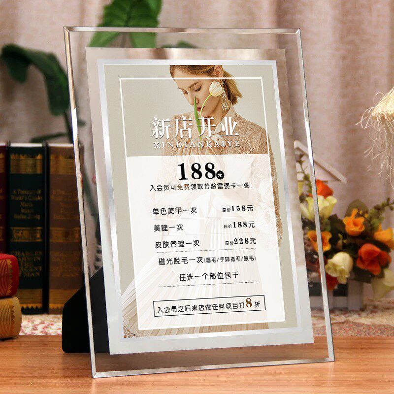 美甲美睫水晶玻璃摆台价格表美容院皮肤管理价Q目表设计定制展示
