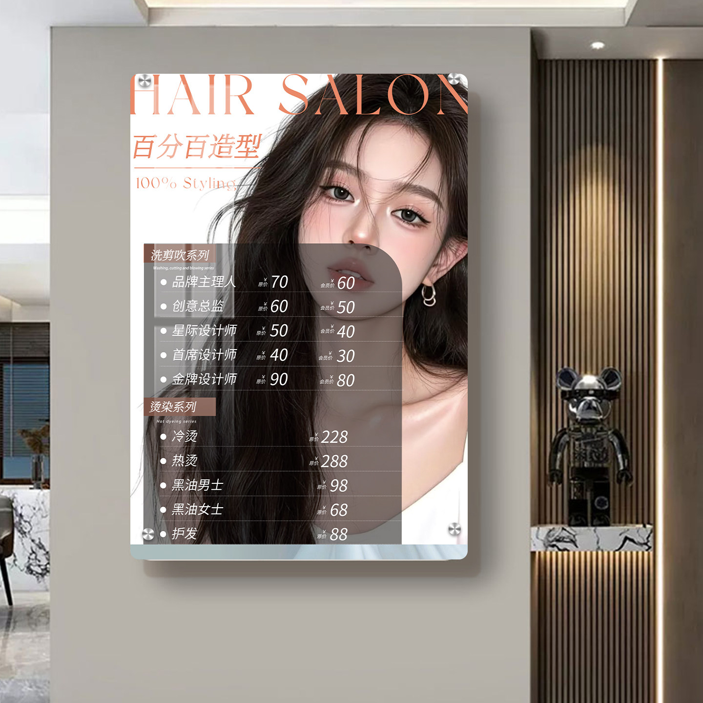 美业美发店价目表展示牌设计亚克力理发店价格表定制美容院发廊标价广告牌美甲养生桌球价位表墙贴提示牌订做