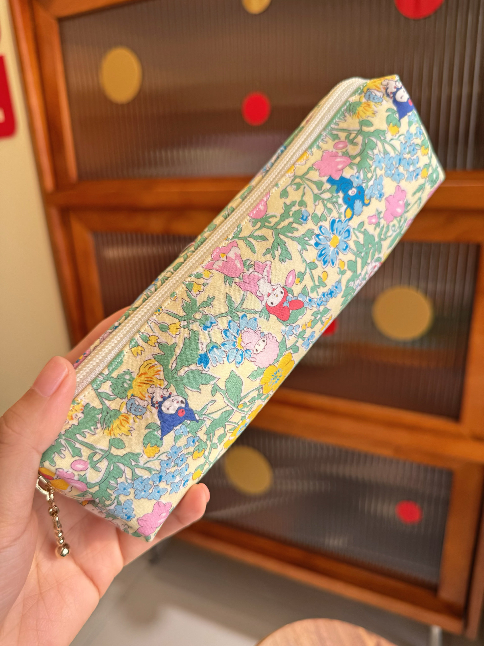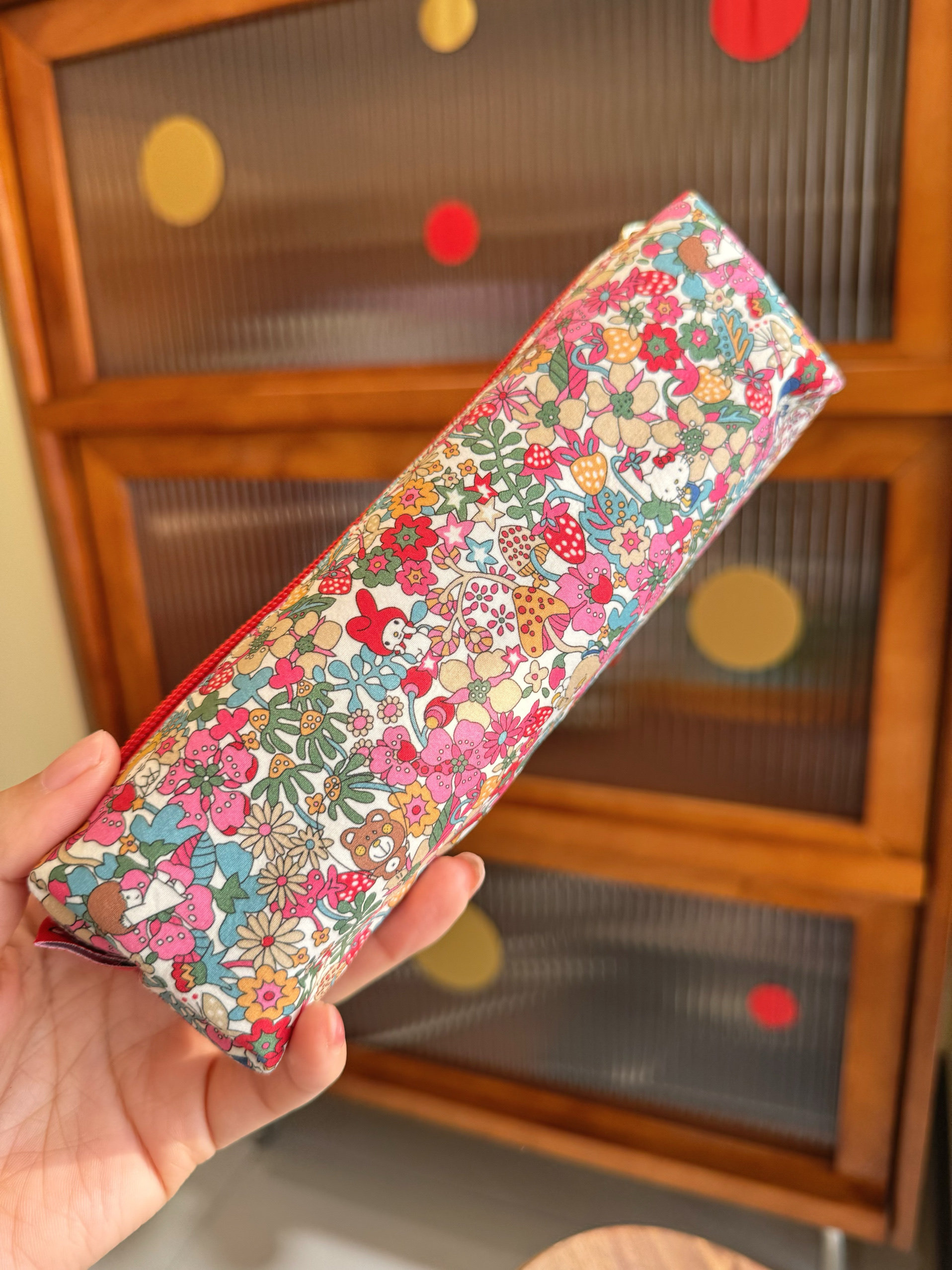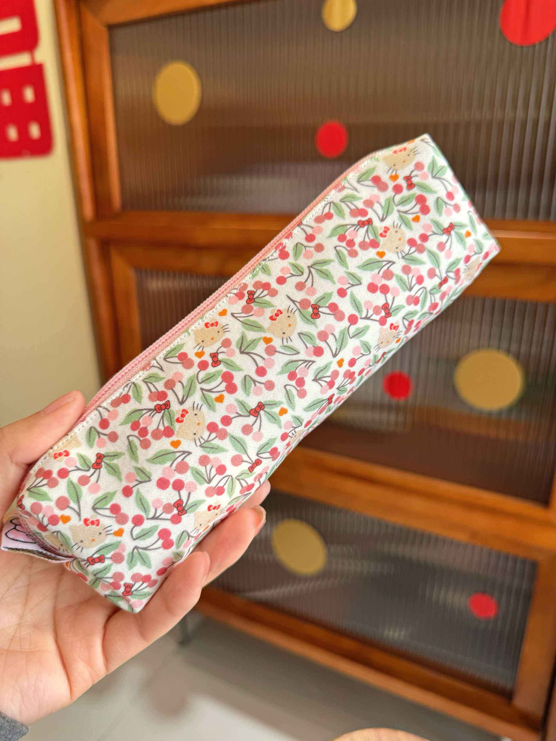 手作可爱KT猫小碎花棉布笔袋大容量学生文具袋化妆包