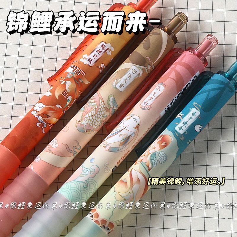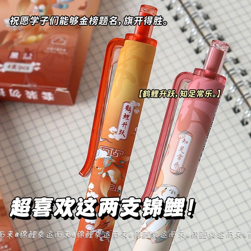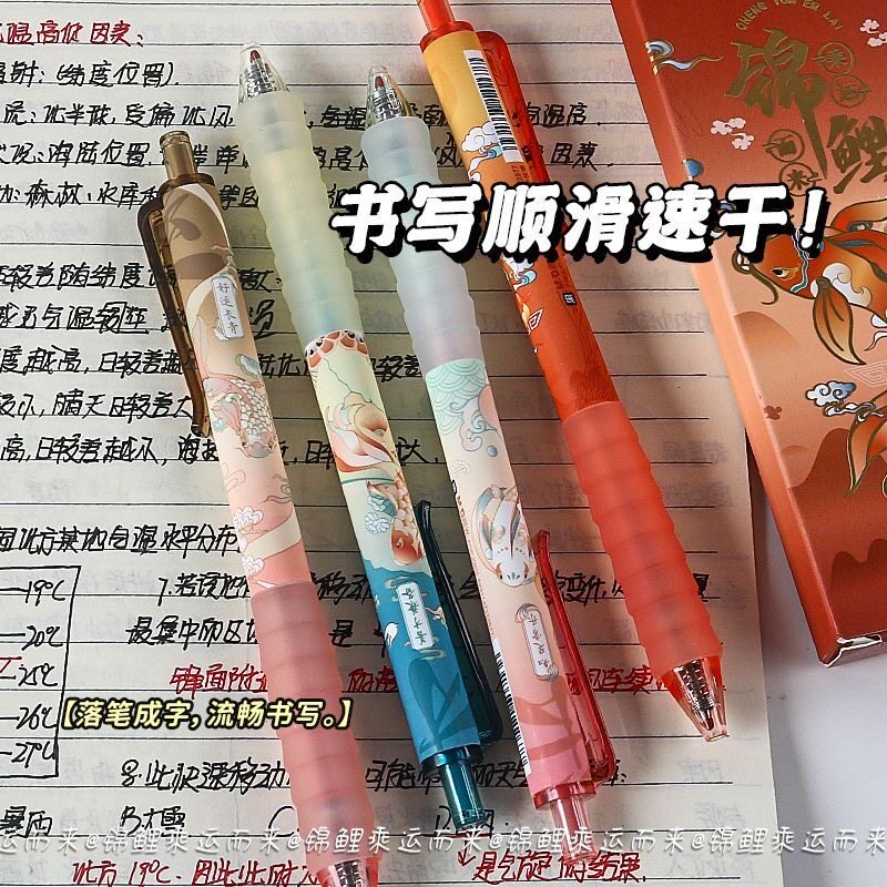 晨光锦鲤系列限定按动中性笔学生用水笔黑色按压式云握手软胶黑笔高颜值签字笔芯刷题碳素笔中国风圆珠笔文具