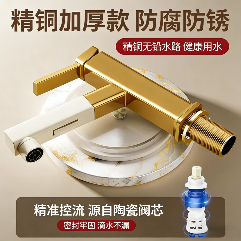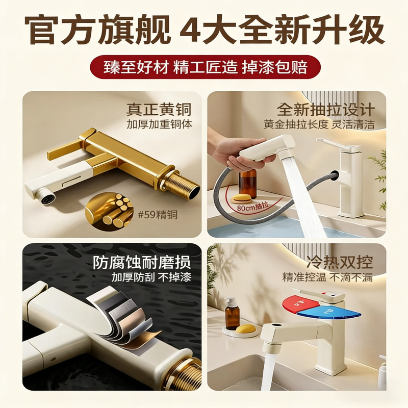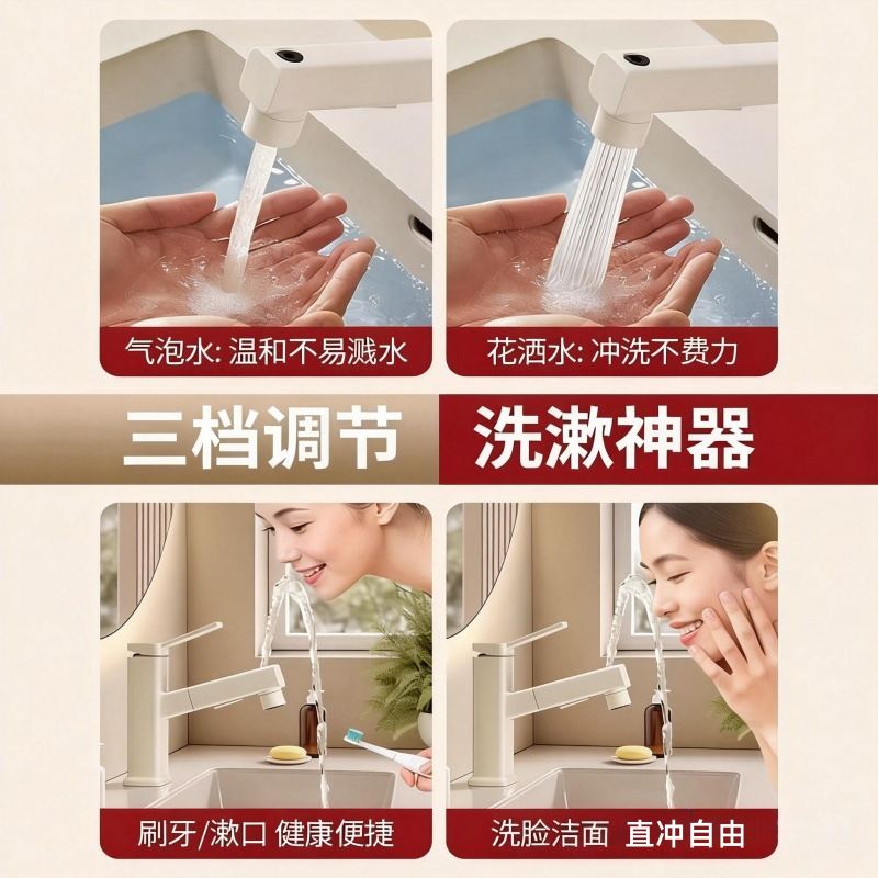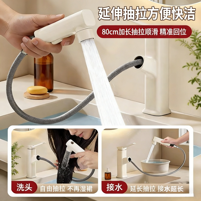 法式洗脸盆水龙头浴室柜台盆抽拉式冷热面盆洗手池风洗手盆卫生间
